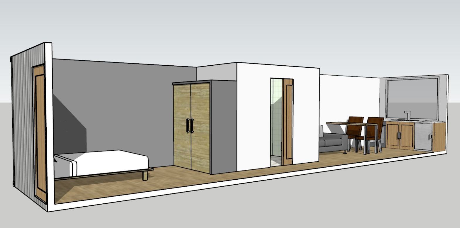 This creates the starting box for our micro house, we then put thought in what a house really needs to be livable, cosy and cost effective. The list below details the necessities and bonus features included the design. Let us know what you think or if your interested using this design.